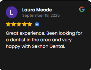 “I had an excellent experience with Dr. Sekhon and the entire team. From the moment I arrived, everyone was friendly, professional, and attentive. The clinic is clean, modern, and very welcoming, which immediately put me at ease. Dr. Sekhon took the time to explain every step clearly and made sure I was comfortable throughout my visit. The procedure was smooth and painless, and I truly felt cared for. Their attention to detail and gentle approach make a big difference. I highly recommend Dr. Sekhon to anyone looking for a skilled, compassionate, and trustworthy dentist.“ – Danniel F.